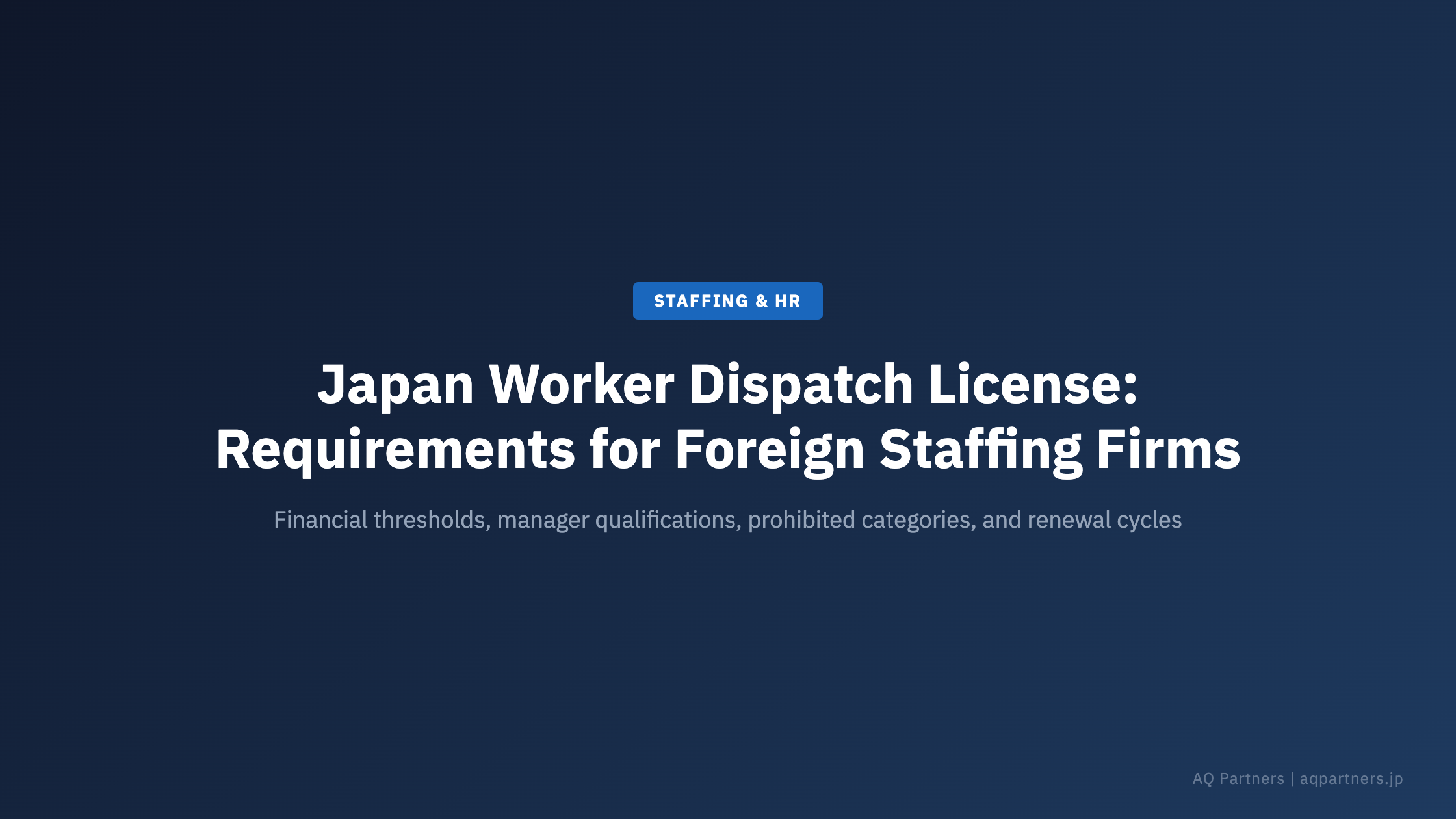 Japan Worker Dispatch License: Requirements for Foreign Staffing Firms