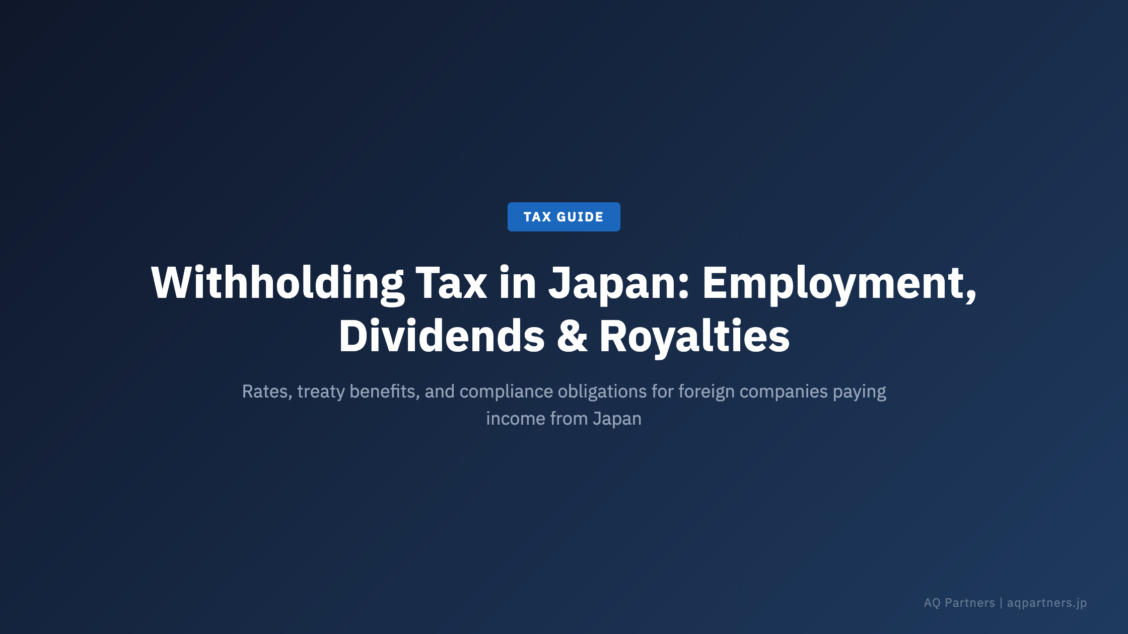 For guidance on withholding tax compliance, treaty application procedures, and payroll setup in Japan, including corporate tax filing, tax calendar management, and transfer pricing documentation, contact AQ Partners for a consultation.